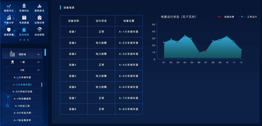 實現與能耗計量系統的融合,實現監控各用電支路或用電設備日、周、月的能耗數據、環比分析各用電支路或用電設備日、周、月的能耗數據、監控各用電支路和用電設備能耗的變化趨勢、關鍵拐點和異常特征、實現分項能耗數據統計。 智能電力系統的監測管理滿足管理者管理安全管理的需求。包括能耗設備的開關控制,能耗系統的電能使用情況趨勢分析、統計等。